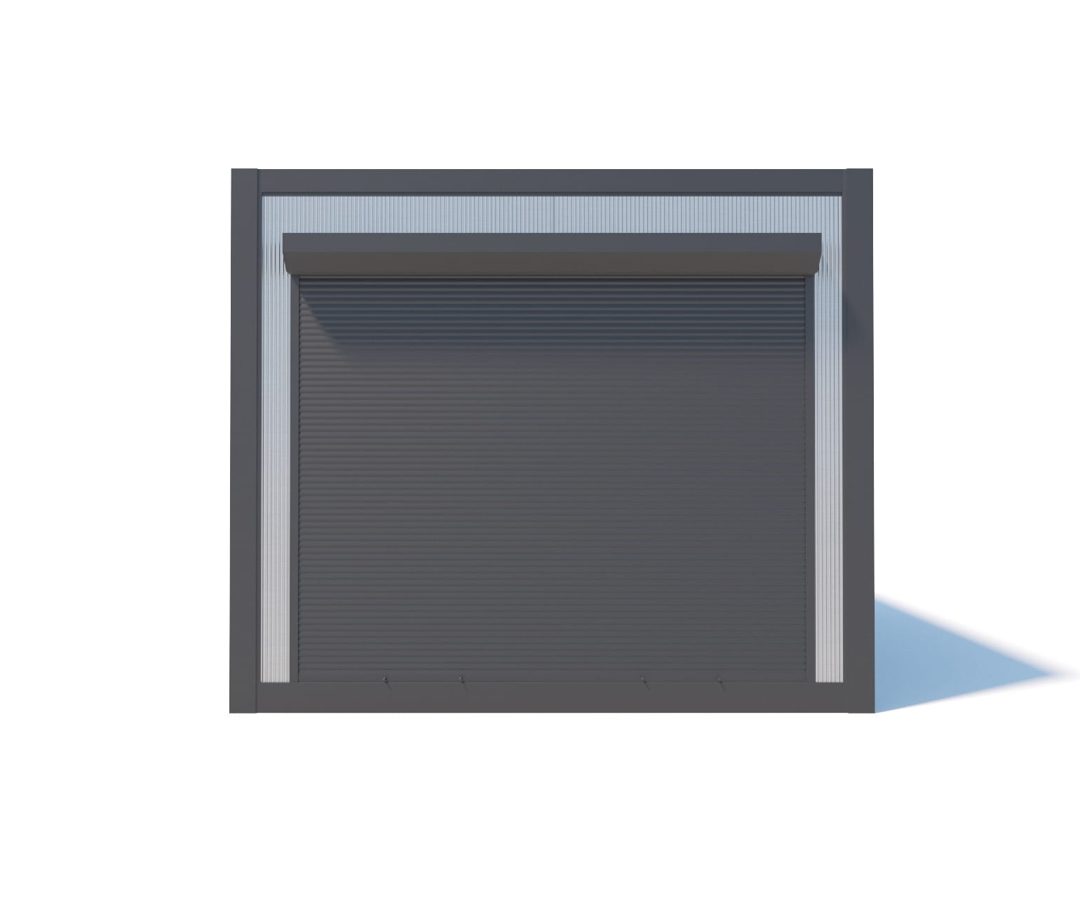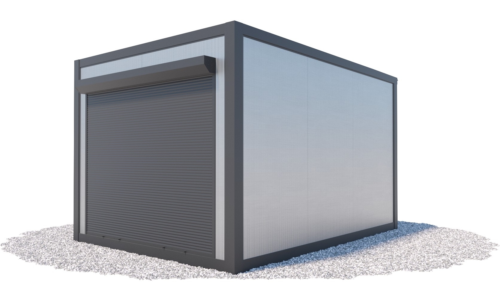 • frontowy otwór okienno-drzwiowy (bez wypełnienia) o wymiarach 220 x 260 cm zamykany za pomocą rolety,