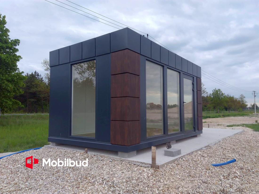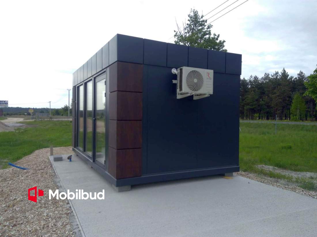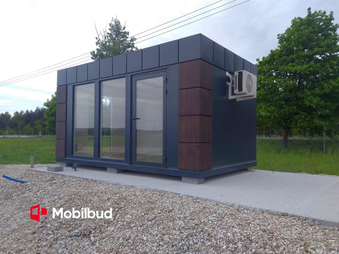 Pawilony biurowe wykorzystywane są przede wszystkim jako przestrzeń robocza związana z działalnością usługową i szeroko rozumianą obsługą klienta, a także jako zaplecze użytkowo-socjalne dla służb serwisowych czy kadry menadżerskiej budów. Wszystkie biura kontenerowe z oferty firmy Mobilbud to obiekty całoroczne, które charakteryzują się atrakcyjnymi warunkami termoizolacyjnymi, wysoką jakością zastosowanych materiałów i nowoczesną estetyką. Każde biuro kontenerowe o rozmiarze 3 x 5 m (przy zastosowaniu odpowiedniego układu okien i drzwi) może mieć zamontowane osobne pomieszczenie z WC i umywalką, a w razie potrzeby i z kabiną prysznicową. Wnętrze pawilonu można podzielić za pomocą ścianek działowych na mniejsze jednostki użytkowe (np. część biurowa, aneks kuchenny, zaplecze magazynowe).