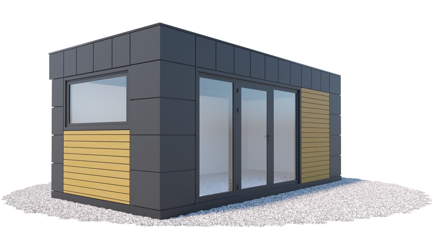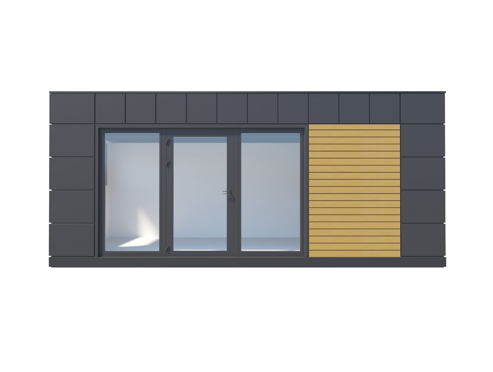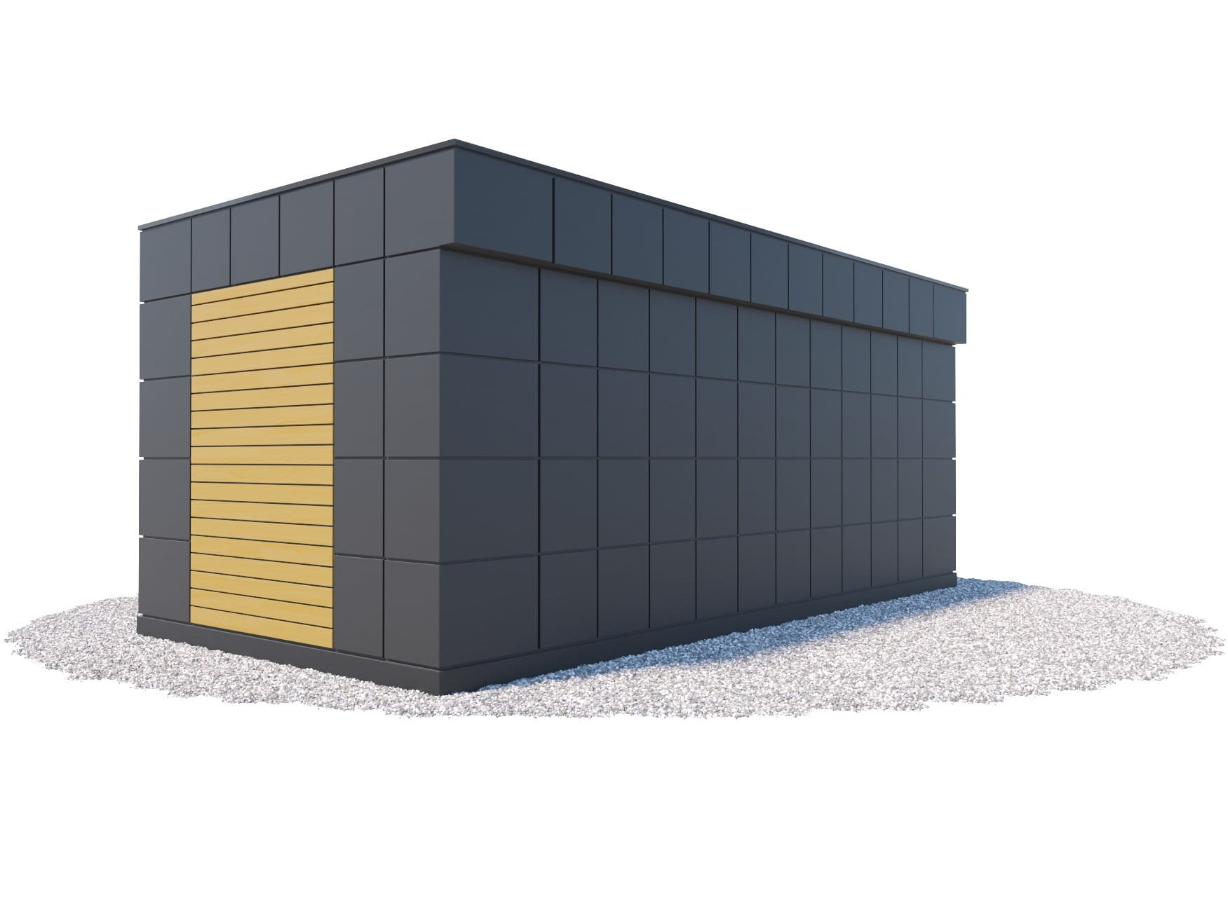 - kolor: grafit RAL 7016 (okna, drzwi, pas dolny, attyka) - opcjonalnie dowolny kolor z palety RAL dla blach.