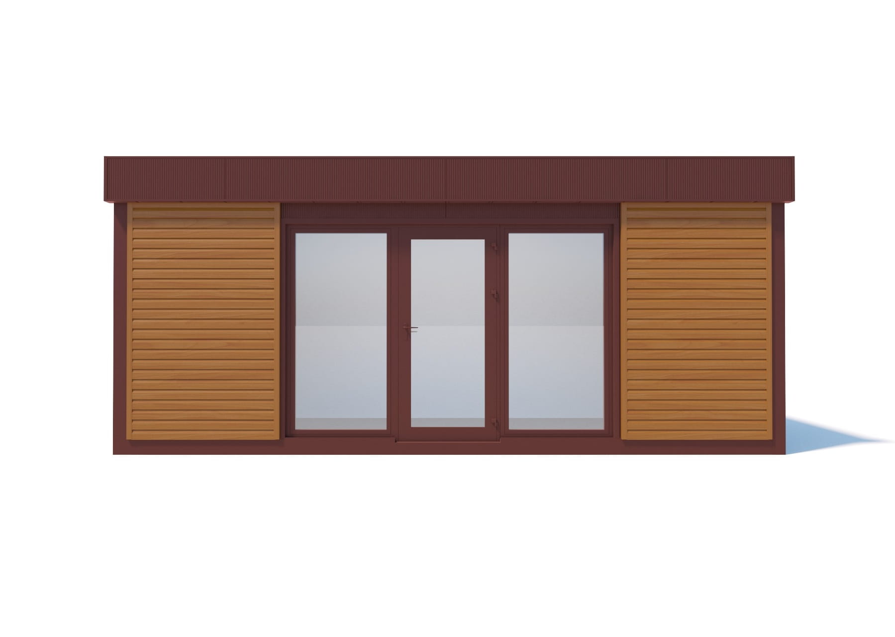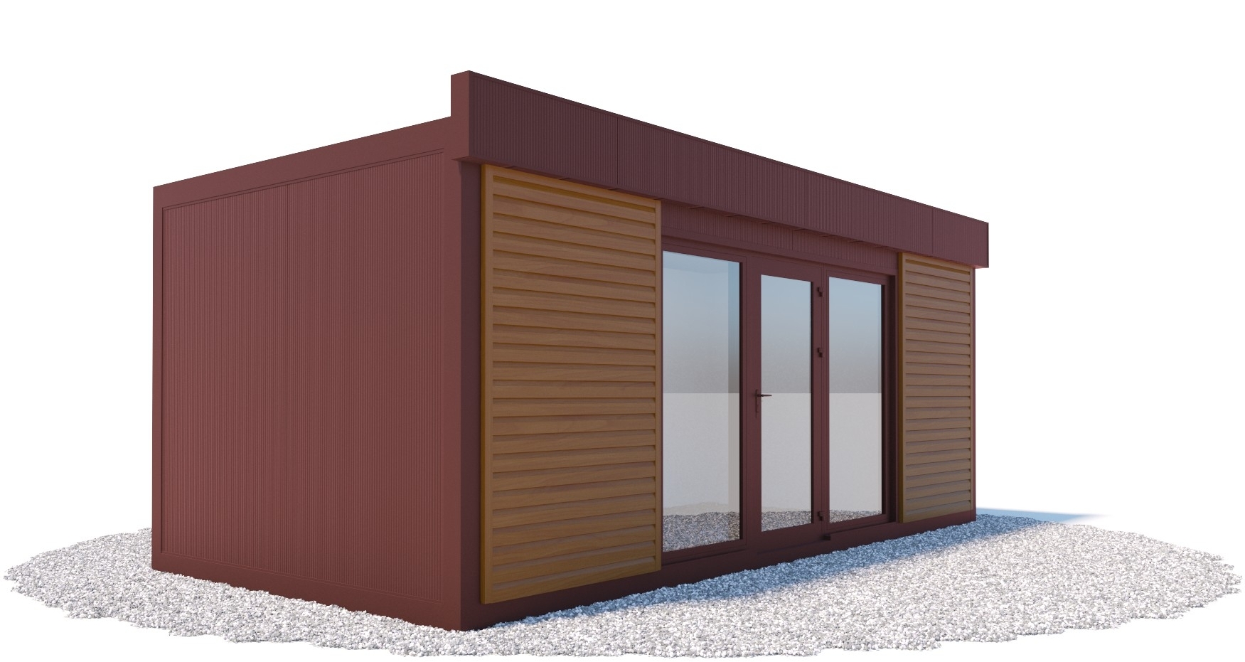 - kolor ścian zewnętrznych: brązowy/ceglasty/czekoladowy RAL 8637 (w standardzie dostępny kolor grafit - RAL 7016, kolor srebrny - RAL 9006 oraz biały - RAL 9010, inne kolory jako opcja),