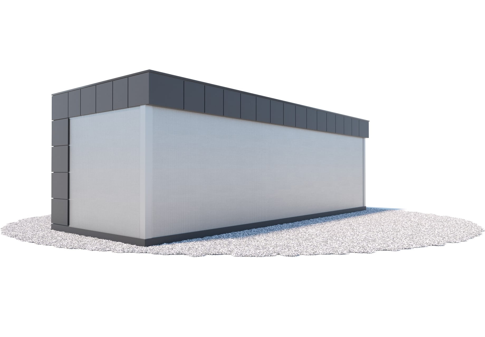 - kolor: grafit RAL 7016 (okna, drzwi, pas dolny, attyka), srebrny RAL 9006 (tylne narożniki) - opcjonalnie dowolny kolor z palety RAL dla blach.