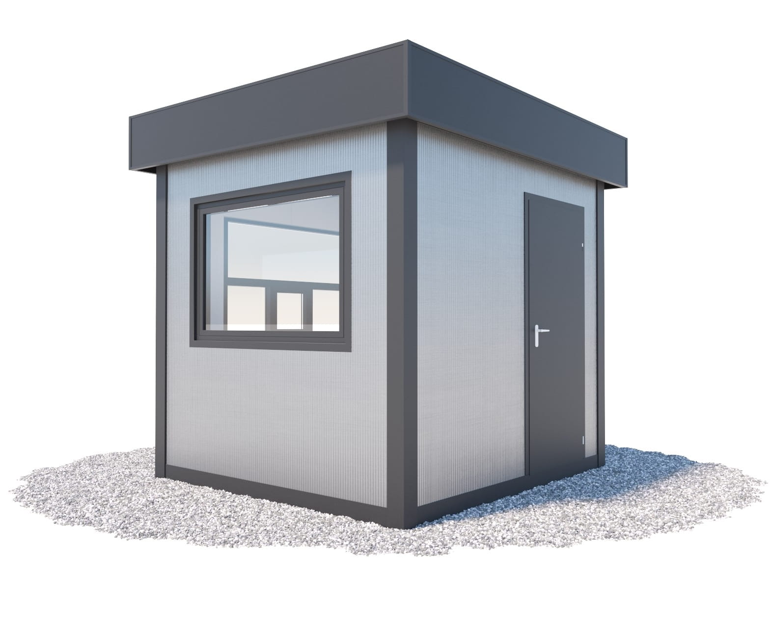 Małe stróżówki z płyty warstwowej w wariancie rozmiarowym 2,4 x 2,6 m przeznaczone są do jedno- lub maksymalnie dwuosobowej obsady. Zazwyczaj stanowią miejsce pracy pracowników ochrony odpowiedzialnych za dozór określonego terenu. Wszystkie stróżówki to wysokiej jakości obiekty całoroczne, które charakteryzują się atrakcyjnymi warunkami termoizolacyjnymi.