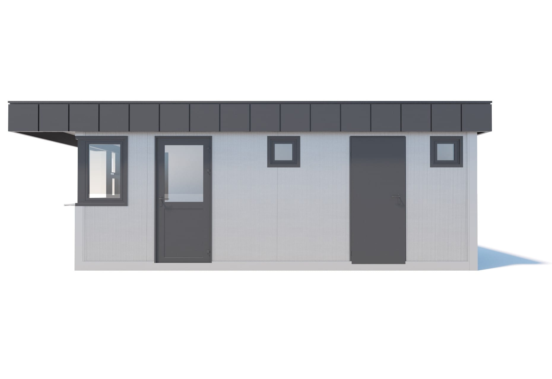 Duże nowoczesne stróżówki (inaczej: wartownie, portiernie kontenerowe, kontenery wartownicze) z płyty warstwowej w wariancie rozmiarowym 3 x 6 m są wykorzystywane najczęściej jako miejsce pracy kilkuosobowego personelu ochrony odpowiedzialnego za dozór określonego terenu. Wszystkie stróżówki z oferty firmy Mobilbud to wysokiej jakości obiekty całoroczne, które charakteryzują się atrakcyjnymi warunkami termoizolacyjnymi i nowoczesną estetyką. Każda portiernia kontenerowa o rozmiarze 3 x 6 m (przy zastosowaniu odpowiedniego układu okien i drzwi) może mieć zamontowane osobne pomieszczenie z WC i umywalką, a w razie potrzeby i z kabiną prysznicową.