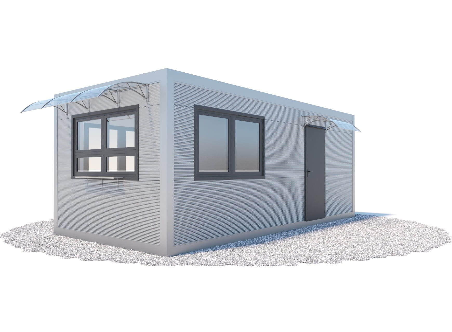 Duże nowoczesne stróżówki (inaczej: wartownie, portiernie kontenerowe, kontenery wartownicze) z płyty warstwowej w wariancie rozmiarowym 3 x 6 m są wykorzystywane najczęściej jako miejsce pracy kilkuosobowego personelu ochrony odpowiedzialnego za dozór określonego terenu. Wszystkie stróżówki z oferty firmy Mobilbud to wysokiej jakości obiekty całoroczne, które charakteryzują się atrakcyjnymi warunkami termoizolacyjnymi i nowoczesną estetyką. Każda portiernia kontenerowa o rozmiarze 3 x 6 m (przy zastosowaniu odpowiedniego układu okien i drzwi) może mieć zamontowane osobne pomieszczenie z WC i umywalką, a w razie potrzeby i z kabiną prysznicową.
